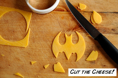 sliced cheese, biscuit cutter, and knife for making the symbol or these cutters